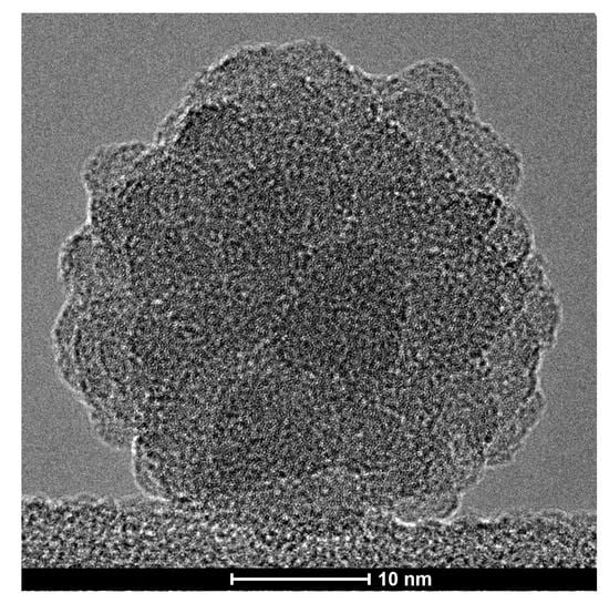 High-resolution TEM image of a typical nearly spherical silicon supercluster deposited onto a TEM grid.