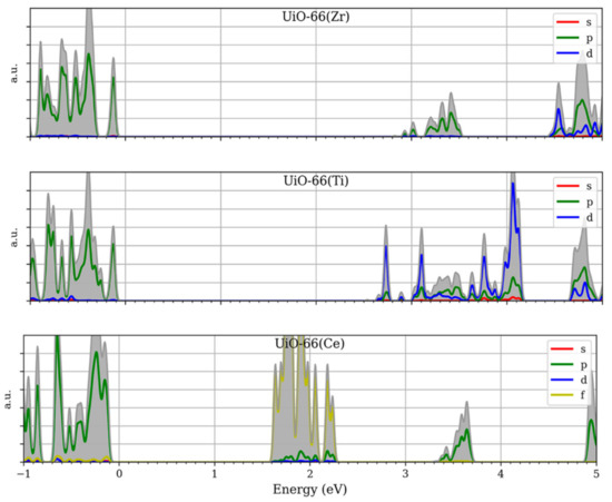 - Hendrickx, K.; Joos, J.J.; De Vos, A.; Poelman, D.; Smet, P.F.; Van Speybroeck, V.; Van Der Voort, P.; Lejaeghere, K. Exploring Lanthanide Doping in UiO-66: A Combined Experimental and Computational Study of the Electronic Structure. Inorg. Chem. 2018, 57, 5463–5474. [Google Scholar] [CrossRef] [PubMed]