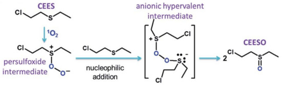 Proposed mechanism for the oxidation of CEES by singlet oxygen (1O2) [35]. Reprinted with permission from ref. [35]. Copyright 2016 Royal Chemical Society.