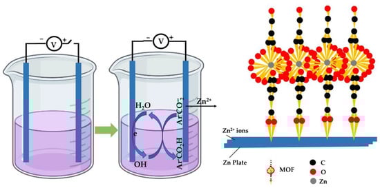Metal–organic frameworks exhibit a wide range of advantageous characteristics, including enhanced surface area, porosity, and stability under varying conditions []. Their porous nature remains intact despite the absence of guest molecules, ensuring that the pore architecture remains unaltered []. The creation of pores, which contribute to the metal–organic frameworks’ functionality, is largely influenced by organic linkers. These linkers, when combined with metallic ions, give rise to various MOFs. In the fundamental structure of MOFs, various metal ions (bonded to oxygen atoms, constituting secondary structural units) can be joined through diverse organic linkers, resulting in a wide range of MOF materials (Figure 2). The Cambridge Crystallographic Data Centre has reported the availability of hundreds of distinct secondary building units []. Notably, the central atom in the secondary building units can be replaced while maintaining the organic linker, leading to the formation of diverse metal–organic frameworks. The specific class of MOF is defined by the metal precursor and organic linker selection.