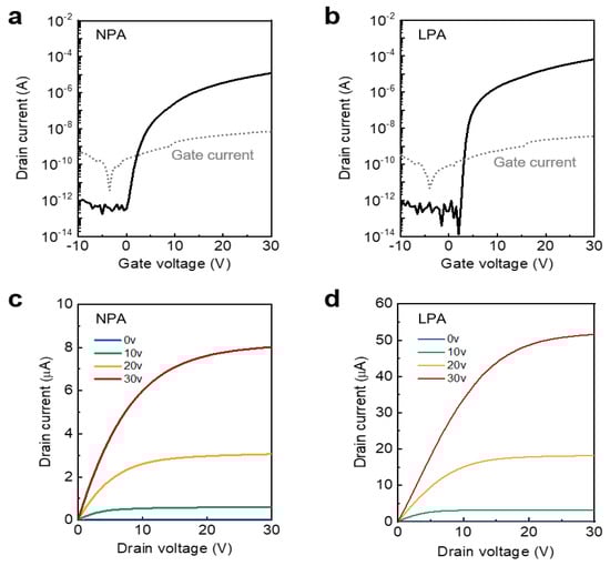 3.3. Electrical Characteristics of LPA InOx TFTs