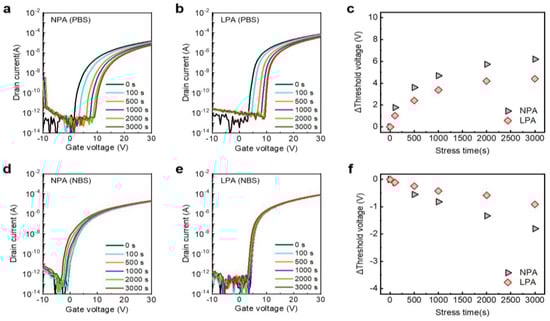 - Choi, S.; Park, J.; Hwang, S.H.; Kim, C.; Kim, Y.-S.; Oh, S.; Baeck, J.H.; Bae, J.U.; Noh, J.; Lee, S.W.; et al. Excessive Oxygen Peroxide Model-Based Analysis of Positive-Bias-Stress and Negative-Bias-Illumination-Stress Instabilities in Self-Aligned Top-Gate Coplanar In–Ga–Zn–O Thin-Film Transistors. Adv. Electron. Mater. 2022, 8, 2101062. [Google Scholar] [CrossRef]
