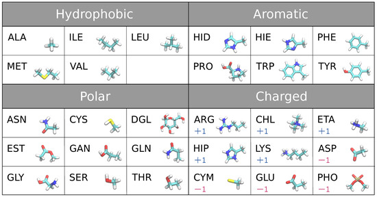 - Wang, J.; Wolf, R.M.; Caldwell, J.W.; Kollman, P.A.; Case, D.A. Development and testing of a general amber force field. J. Comput. Chem. 2004, 25, 1157–1174. [Google Scholar] [CrossRef]