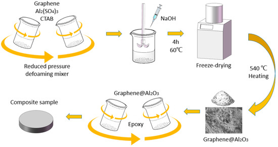 Labeled schematic illustration for the synthesis of Al2O3@Graphene-filled epoxy composites.
