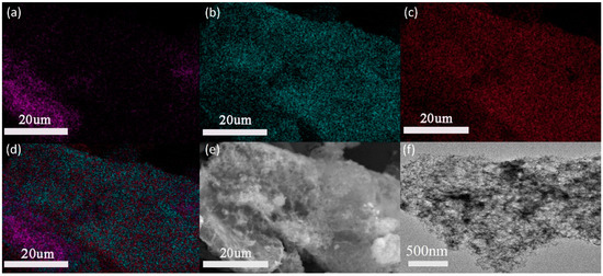 Energy-dispersive X-ray spectroscopy (EDS) of Al2O3@Graphene–CTAB: (a) C element; (b) O element; (c) Al element; (d) total elements composition; and (e) SEM and (f) TEM pictures of Al2O3@Graphene–CTAB.