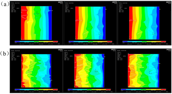 Temperature fields of three random models for (a) 10 wt% Al2O3@Graphene and (b) 20 wt% Al2O3@Graphene–CTAB-filled epoxy composites.