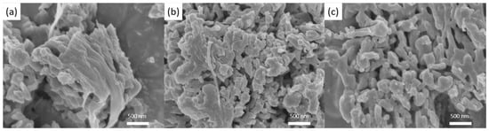 SEM images of (a) P-VO2, (b) H-VO2, and (c) E-VO2 powders.