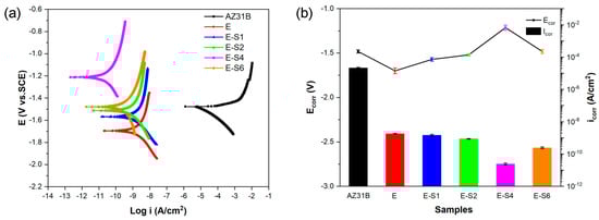 - Wang, C.; Jiang, B.; Liu, M.; Ge, Y. Corrosion characterization of micro-arc oxidization composite electrophoretic coating on AZ31B magnesium alloy. J. Alloys Compd. 2015, 621, 53–61. [Google Scholar] [CrossRef]