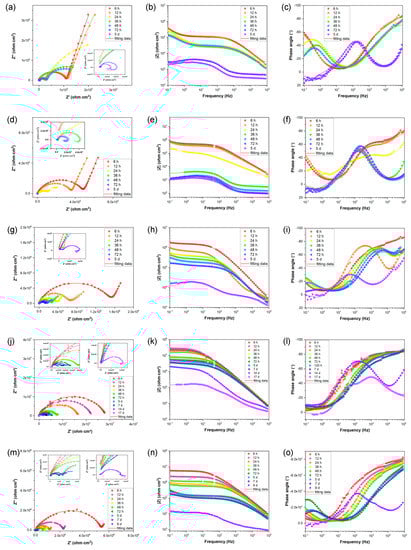| Y0f (ohm−2·cm−2·S−n) | - | 9.72 × 10−10 | 6.36 × 10−10 | 5.94 × 10−10 | 2.35 × 10−10 | 6.73 × 10−10 |