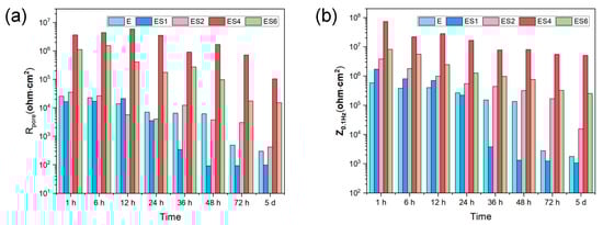 | Rct (ohm·cm2) | 20.23 | 1.55 × 106 | 2.81 × 106 | 3.61 × 106 | 7.27 × 107 | 6.83 × 106 |
