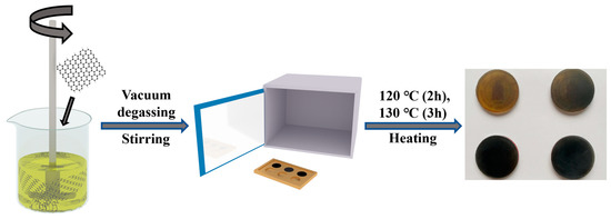 Figure 1. Preparation procedure of the composite material F−graphene/epoxy composites.