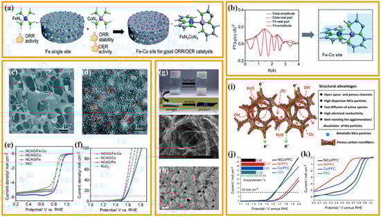 - Zhou, X.; Gao, J.; Hu, Y.; Jin, Z.; Hu, K.; Reddy, K.M.; Yuan, Q.; Lin, X.; Qiu, H.-J. Theoretically Revealed and Experimentally Demonstrated Synergistic Electronic Interaction of CoFe Dual-Metal Sites on N-doped Carbon for Boosting Both Oxygen Reduction and Evolution Reactions. Nano Lett. 2022, 22, 3392–3399. [Google Scholar] [CrossRef]