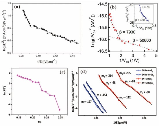 | MoS2 nanoflower | edge emission | The turn-on field decreases with the cathode–anode distance, which is inconsistent with the FN model [89]. |