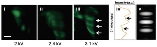 - Nishino, H.; Yoshida, S.; Kojima, A.; Ikegami, N.; Tanaka, S.; Koshida, N.; Esashi, M. Fabrication of pierce-type nanocrystalline Si electron-emitter array for massively parallel electron beam lithography. Electr. Commun. Jpn. 2016, 99, 11–19. [Google Scholar] [CrossRef]