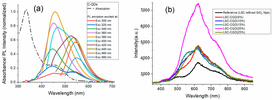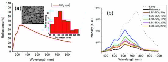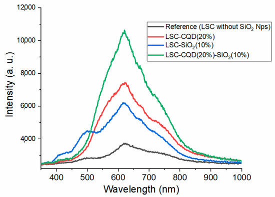 Polché, M.; José Miguel, B.F.; Guzmán González, C.A.; González Contreras, G.; Romero Arellano, V.H. Study of the Scattering Effect by SiO2 Nanoparticles, in a Luminescent Solar Concentrator Sensitized with Carbon Dots. Nanomaterials 2023, 13, 2480. https://doi.org/10.3390/nano13172480