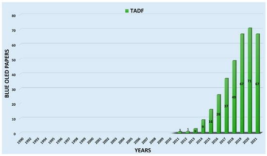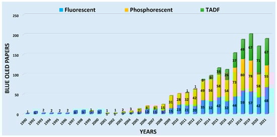 Siddiqui I, Kumar S, Tsai Y-F, Gautam P, Shahnawaz, Kesavan K, Lin J-T, Khai L, Chou K-H, Choudhury A, et al. Status and Challenges of Blue OLEDs: A Review. Nanomaterials. 2023; 13(18):2521. https://doi.org/10.3390/nano13182521