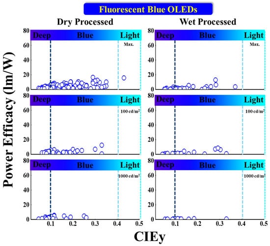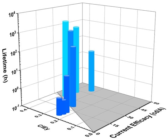 5.1.4. Lifetime and Current Efficacy vs. CIEy