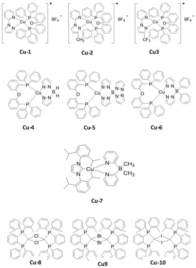 - Cu(I) Complexes–Thermally Activated Delayed Fluorescence. Photophysical Approach and Material Design|Request PDF. Available online: https://www.researchgate.net/publication/304779001_CuI_complexes_-_Thermally_activated_delayed_fluorescence_Photophysical_approach_and_material_design (accessed on 17 May 2022).