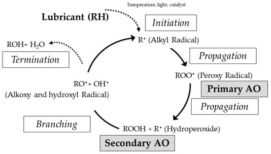 Figure 9). There exist different alternatives to inhibit the oxidation mechanism, with one of them being the use of radical scavengers. Radical scavengers are referred to as primary antioxidants (AO), since they function by breaking the Propagation Step, thus interrupting the free radical chain growth [