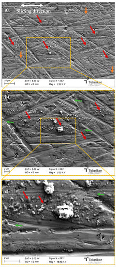 51]. Additionally, it was observed that the steel surface was smoothed as a consequence of the severe contact conditions, which promoted locally adhesive wear on the disc.