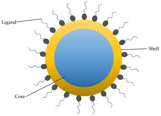 As mentioned, the structures of typical QDs are core or core/shell structures. Examples of core QD structures include cadmium telluride (CdTe), while core/shell QD structures include CdSe/ZnS or CdTe/CdS, whose properties can be further enhanced via different surface coatings. The electroluminescence and optical properties of the QD core can be manipulated by altering the sizes of the QD core and shell. Furthermore, core/shell QDs having a shell band gap larger than the core band gap give rise to the electroluminescence properties related to exciton decay by radiative processes [56,57].