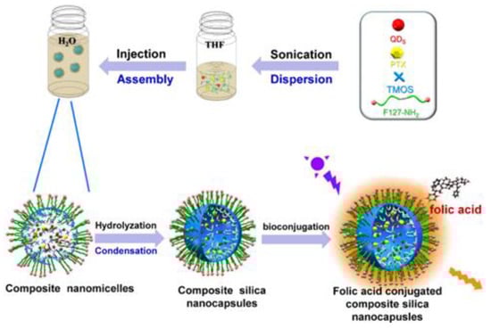 - Zhao, T.; Liu, X.; Li, Y.; Zhang, M.; He, J.; Zhang, X.; Liu, H.; Wang, X.; Gu, H. Fluorescence and drug loading properties of ZnSe:Mn/ZnS-Paclitaxel/SiO2 nanocapsules templated by F127 micelles. J. Colloid Interface Sci. 2017, 490, 436–443. [Google Scholar] [CrossRef] [PubMed]