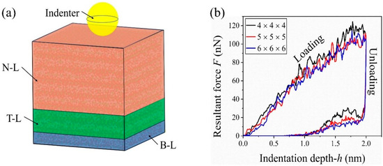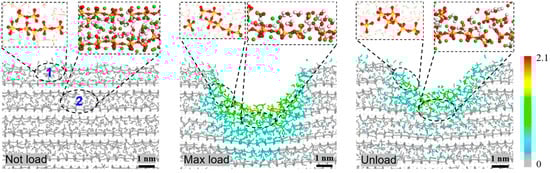 - Liu, C.-L.; Fang, T.-H.; Lin, J.-F. Atomistic Simulations of Hard and Soft Films under Nanoindentation. Mater. Sci. Eng. A 2007, 452, 135–141. [Google Scholar] [CrossRef]