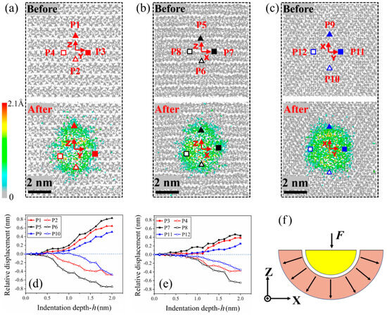 - Qiu, C.; Zhu, P.; Fang, F.; Yuan, D.; Shen, X. Study of Nanoindentation Behavior of Amorphous Alloy Using Molecular Dynamics. Appl. Surf. Sci. 2014, 305, 101–110. [Google Scholar] [CrossRef]