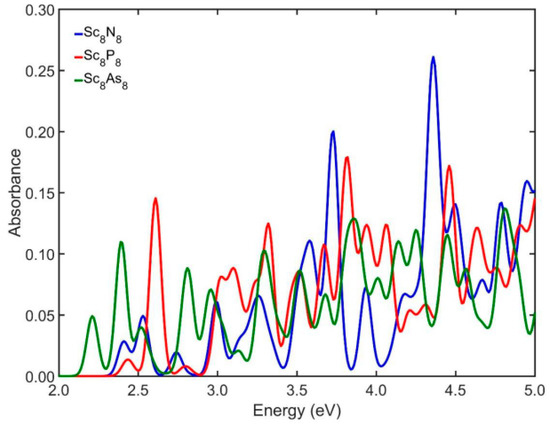 Chicago/Turabian StyleMichos, Fotios I., Alexandros G. Chronis, and Michail M. Sigalas. 2023. "Optical Properties of ScnYn (Y = N, P As) Nanoparticles" Nanomaterials 13, no. 18: 2589. https://doi.org/10.3390/nano13182589