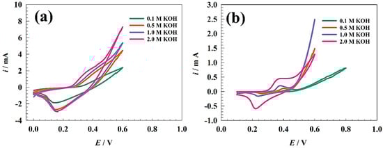 CVs of modified GC/NFO electrode at different concentrations of KOH.