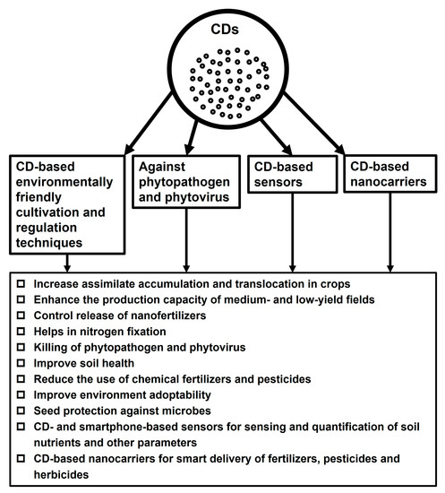 Although considerable developments have been made in the research on CDs, further research is needed to broaden the understanding of their potential application in agriculture. Here, future research prospects of CDs in agriculture are discussed in brief (Figure 3).
