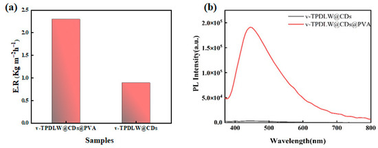 (a) Evaporation rate and (b) fluorescence spectra of v−TPDLW@CDs and v−TPDLW@CDs@PVA.