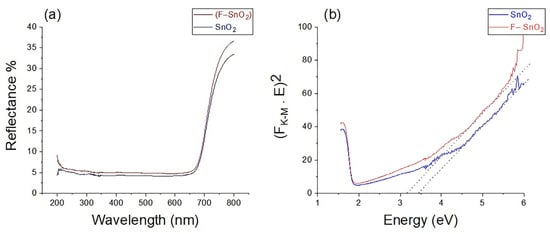 (a) Reflectance % and (b) the Tuck plot for SnO2 and F–SnO2, respectively.