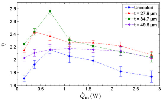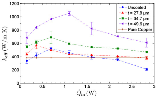 - Simultaneously, the nanocapillary pressure along with the oxygenated functional group drives the condensate back to the evaporator section in a continuous and efficient manner. The GNP nano-wicks provide significant enhancement in the key processes of an MHP, namely the evaporation and the condensate circulation, leading to a remarkable improvement in its heat transfer efficiency which is evidently dependent on the thickness of the GNP nano-wicks.