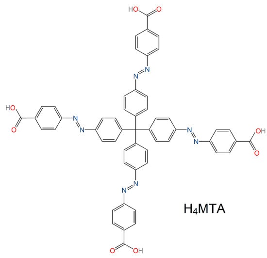All the chemicals used in the preparation of methanetetrayltetrakis(benzene-4,1diyl)tetrakis(aza))tetrakis(methan-1-yl-1-yliden)tetrabenzoic acid, H4MTA (see Figure 1), UPJS-15, and UPJS-16 were purchased from eMolecules, Acros Organics and Sigma-Aldrich companies, and used without further purification. H4MTA, as an organic part of MOFs, was synthesized by multi-step organic reactions according to the published literature procedure [].