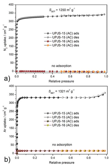 Prior to the gas physisorption experiments, UPJS-15 (AC) and UPJS-16 (AC) samples were degassed under a vacuum for 16 h @ 120 °C.