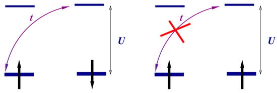 - Hubbard, J. Electron Correlations in Narrow Energy Bands. Proc. R. Soc. Lond. Math. Phys. Eng. Sci. 1963, 276, 238–257. [Google Scholar] [CrossRef]