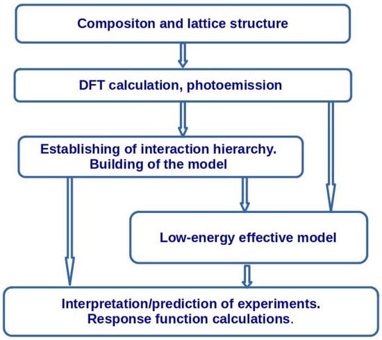 - Kuzian, R.O.; Krasovskii, E.E. One-step approach to ARPES from strongly correlated solids: A Mott-Hubbard system. Phys. Rev. B 2016, 94, 115119. [Google Scholar] [CrossRef]