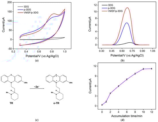 3.4. Enhanced Electrochemical Performance of TR on VMSF/p-3DG