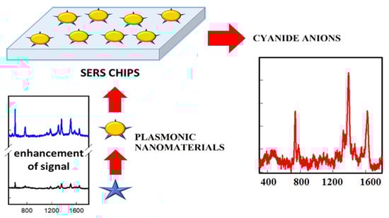 - Tran, C.D.; Ngoc, M.K.; Truc, Q.N.L.; Tuan, A.C.; Ngoc, H.N.; Van, V.L. Modification of the SERS spectrum of cyanide traces due to complex formation between cyanide and silver. Adv. Nat. Sci. Nanosci. Nanotechnol. 2018, 9, 025006. [Google Scholar]