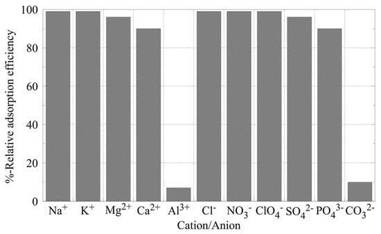 Investigations on the effect of ionic strength on the adsorption could provide indications about the predominance of inner- or outer-sphere complex formations. Generally, when inner-sphere complexes are formed, which are characterized by a direct chemical bond between the surface functional groups of the adsorbent and the adsorbate, the sorption efficiency does not significantly depend on the ionic strength of the solution. On the other hand, if the adsorption is controlled mainly by outer-sphere complexes, which are based on pure electrostatic attraction and the ionic adsorbate retains its hydration sphere, the sorption efficiency is strongly affected by the ionic strength/salinity [,].