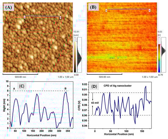 Musa, I.; Qamhieh, N.; Mahmoud, S.T. Ag Nanocluster Production through DC Magnetron Sputtering and Inert Gas Condensation: A Study of Structural, Kelvin Probe Force Microscopy, and Optical Properties. Nanomaterials 2023, 13, 2758. https://doi.org/10.3390/nano13202758