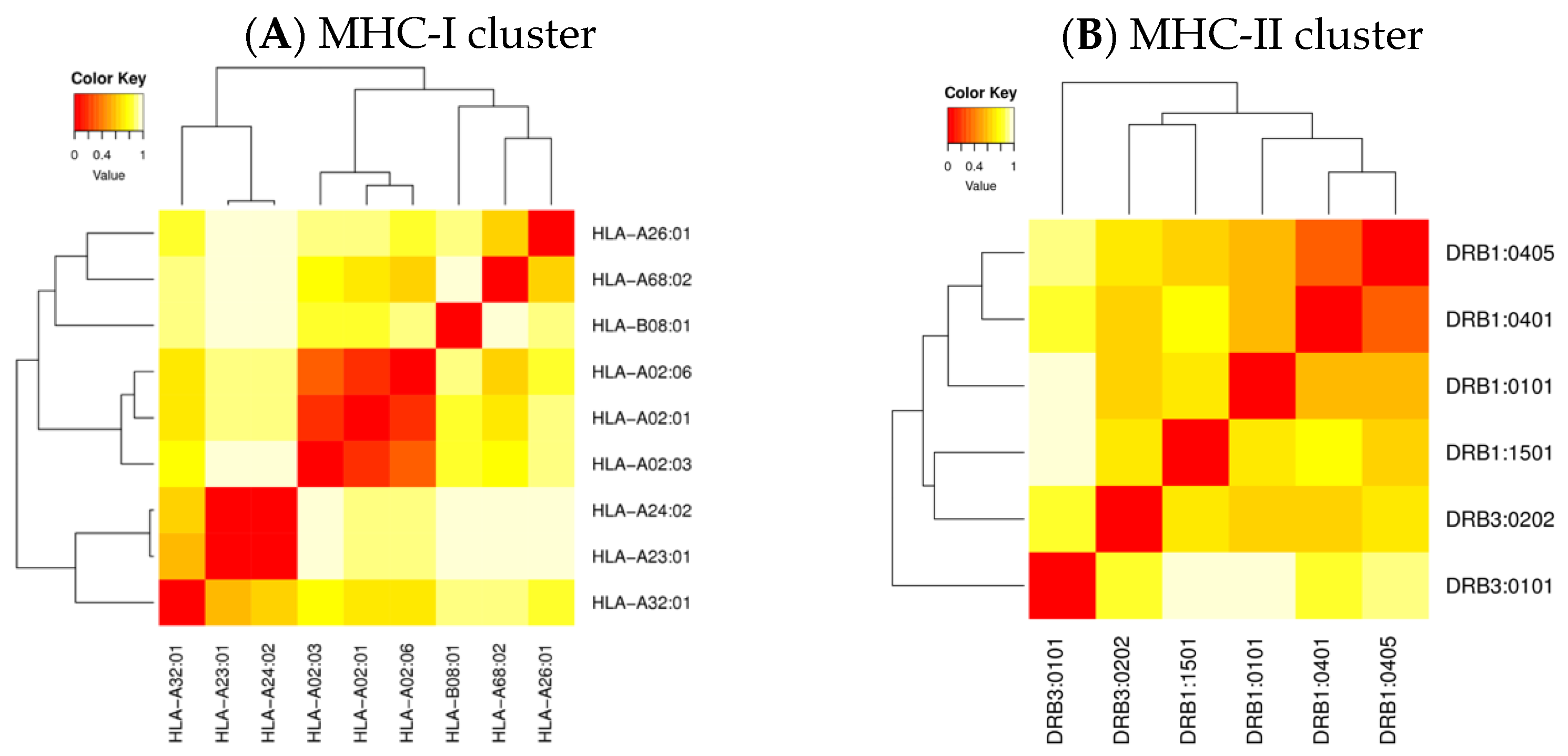 2.4. Cluster Analysis of the MHC-Restricted Alleles