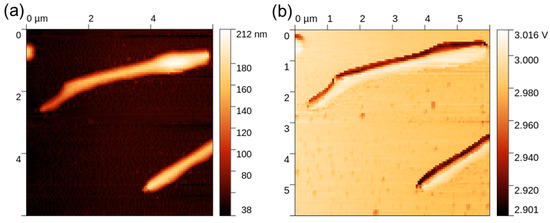 SThM measurement on an NW sample: (a) topography; (b) thermal signal.