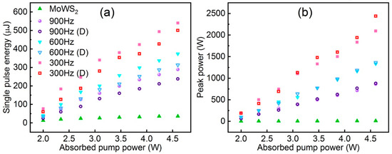 - Wang, J.; Chen, L.; Dou, C.; Yan, H.; Meng, L.; Wei, Z. Mo0. 5W0. 5S2 for Q-switched pulse generation in ytterbium-doped fiber laser. Nanotechnology 2018, 29, 224002. [Google Scholar] [CrossRef] [PubMed]