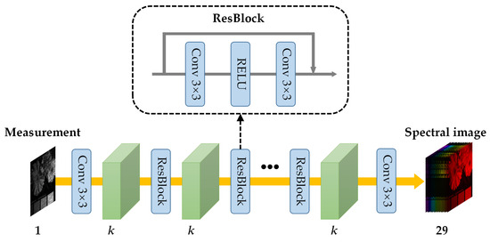 - Kohei, Y.; Han, X.-H. Deep Residual Attention Network for Hyperspectral Image Reconstruction. In Proceedings of the 2020 25th International Conference on Pattern Recognition (ICPR), Milan, Italy, 10–15 January 2021; pp. 8547–8553. [Google Scholar]