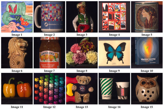 - Arad, B.; Ben-Shahar, O. Sparse Recovery of Hyperspectral Signal from Natural RGB Images. In Computer Vision—ECCV 2016, Proceedings of the 14th European Conference, Amsterdam, The Netherlands, 11–14 October 2016; Leibe, B., Matas, J., Sebe, N., Welling, M., Eds.; Springer International Publishing: Cham, Switzerland, 2016; pp. 19–34. [Google Scholar]