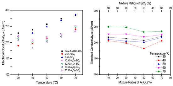 - Khdher, A.M.; Sidik, N.A.C.; Hamzah, W.A.W.; Mamat, R. An experimental determination of thermal conductivity and electrical conductivity of bio glycol based Al2O3 nanofluids and development of new correlation. Int. Commun. Heat Mass Transf. 2016, 73, 75–83. [Google Scholar] [CrossRef]