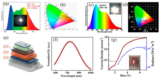 80. Zhang, F.; Chen, X.; Qi, X.; Liang, W.; Wang, M.; Ma, Z.; Ji, X.; Yang, D.; Jia, M.; Wu, D.; et al. Regulating the Singlet and Triplet Emission of Sb3+ Ions to Achieve Single-Component White-Light Emitter with Record High Color-Rendering Index and Stability. Nano Lett. 2022, 22, 5046–5054. [Google Scholar] [CrossRef]