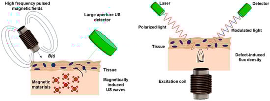 Schematic diagram of acoustic imaging and magneto-optic imaging. (Reprinted (adapted) with permission from []. Copyright 2020. American Chemical Society.).